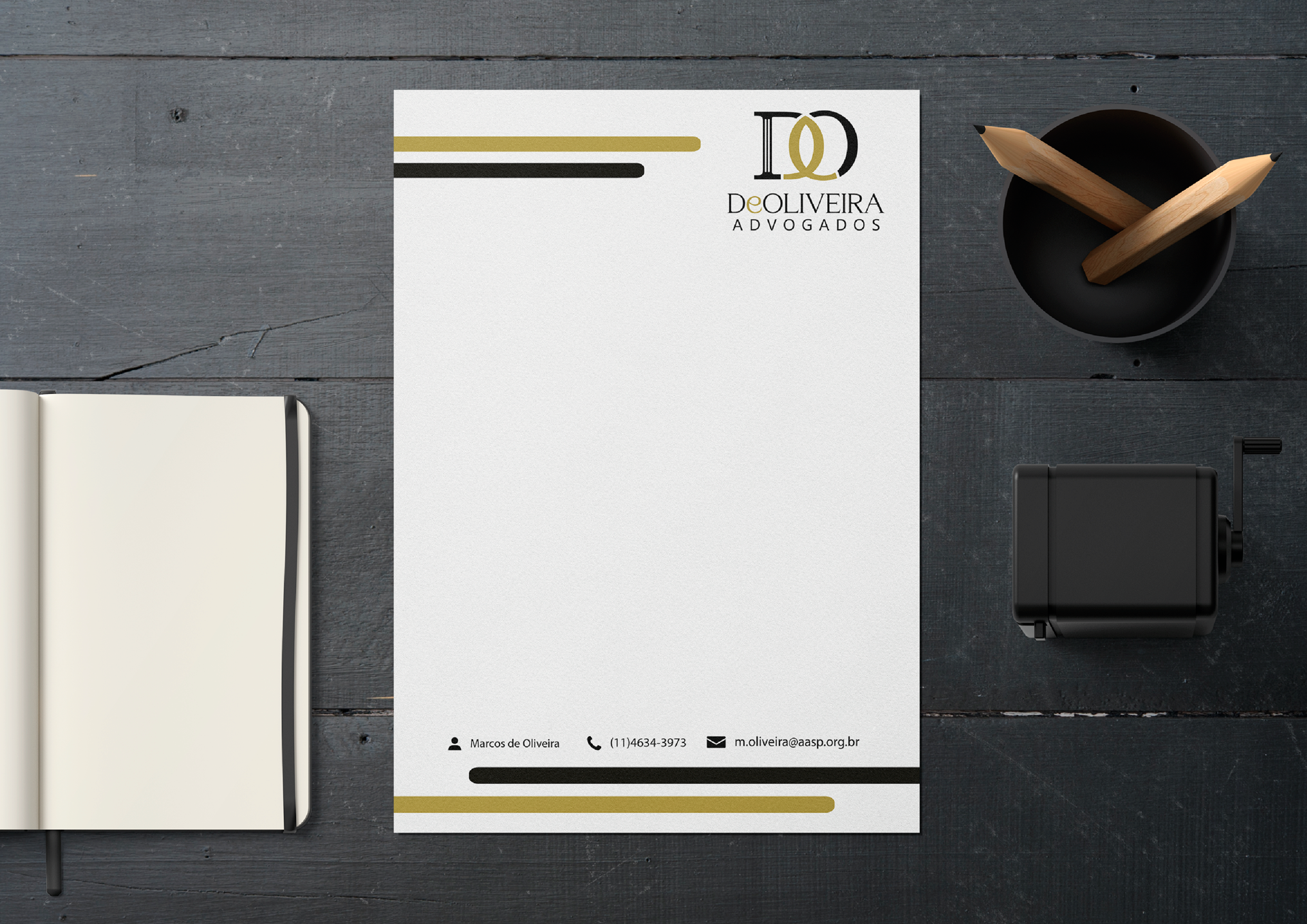 Para o escritório DeOliveira Advogados, com 16 anos de atuação em casos complexos e expertise em diversas áreas do Direito, desenvolvemos uma identidade visual moderna e sofisticada.
