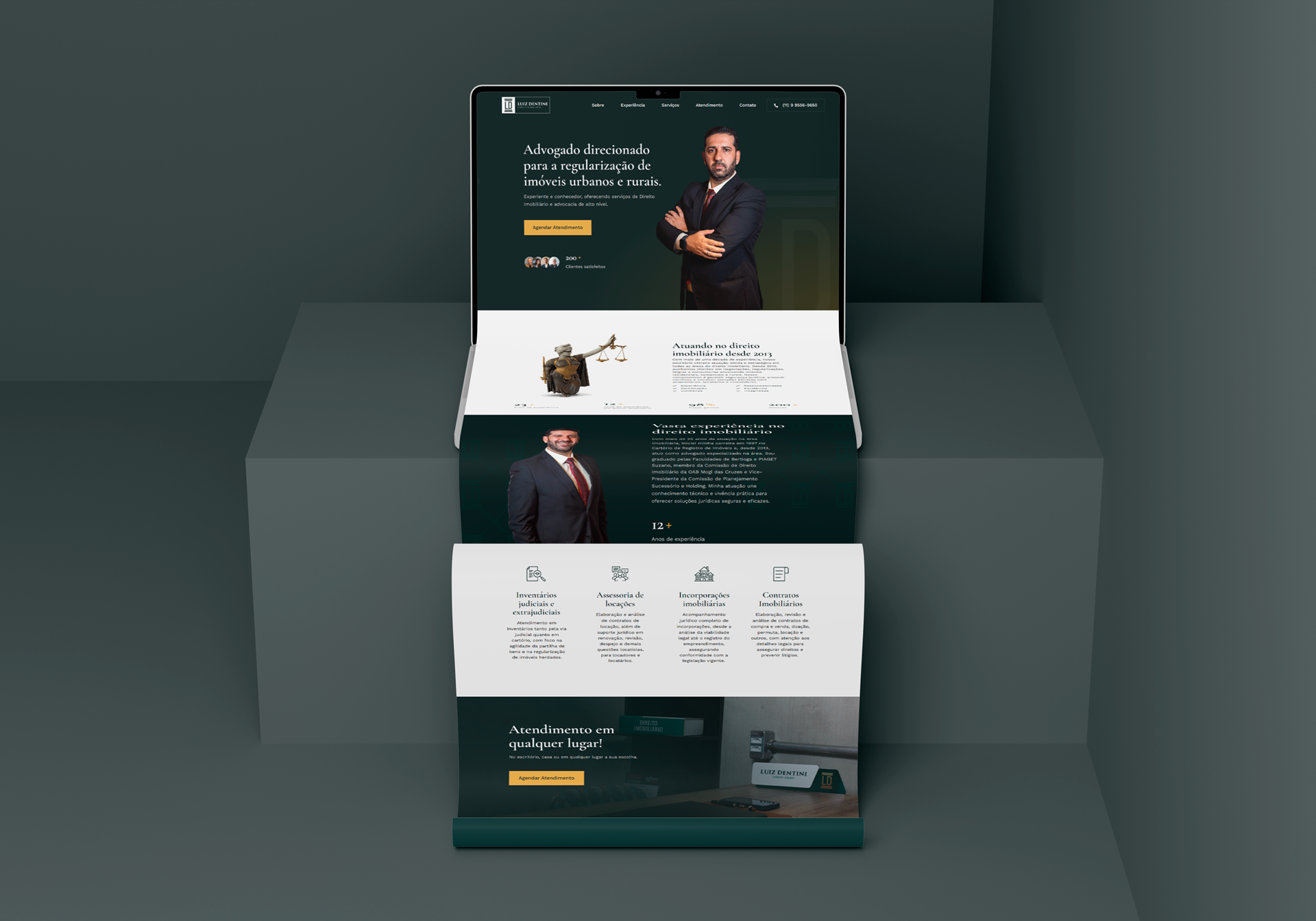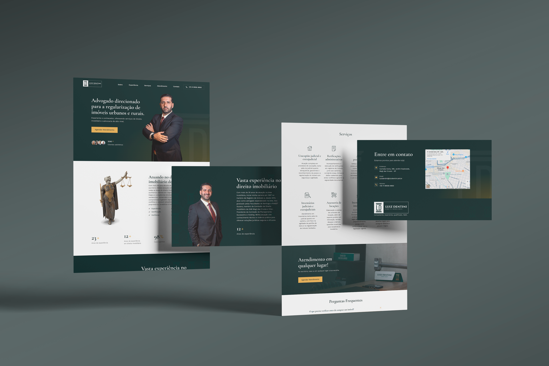 Criação do site institucional para o escritório Dr. Luiz Dentini, especializado em Direito Imobiliário. O projeto destaca a experiência desde 2013 e valoriza a apresentação dos serviços jurídicos, transmitindo confiança e excelência aos clientes.