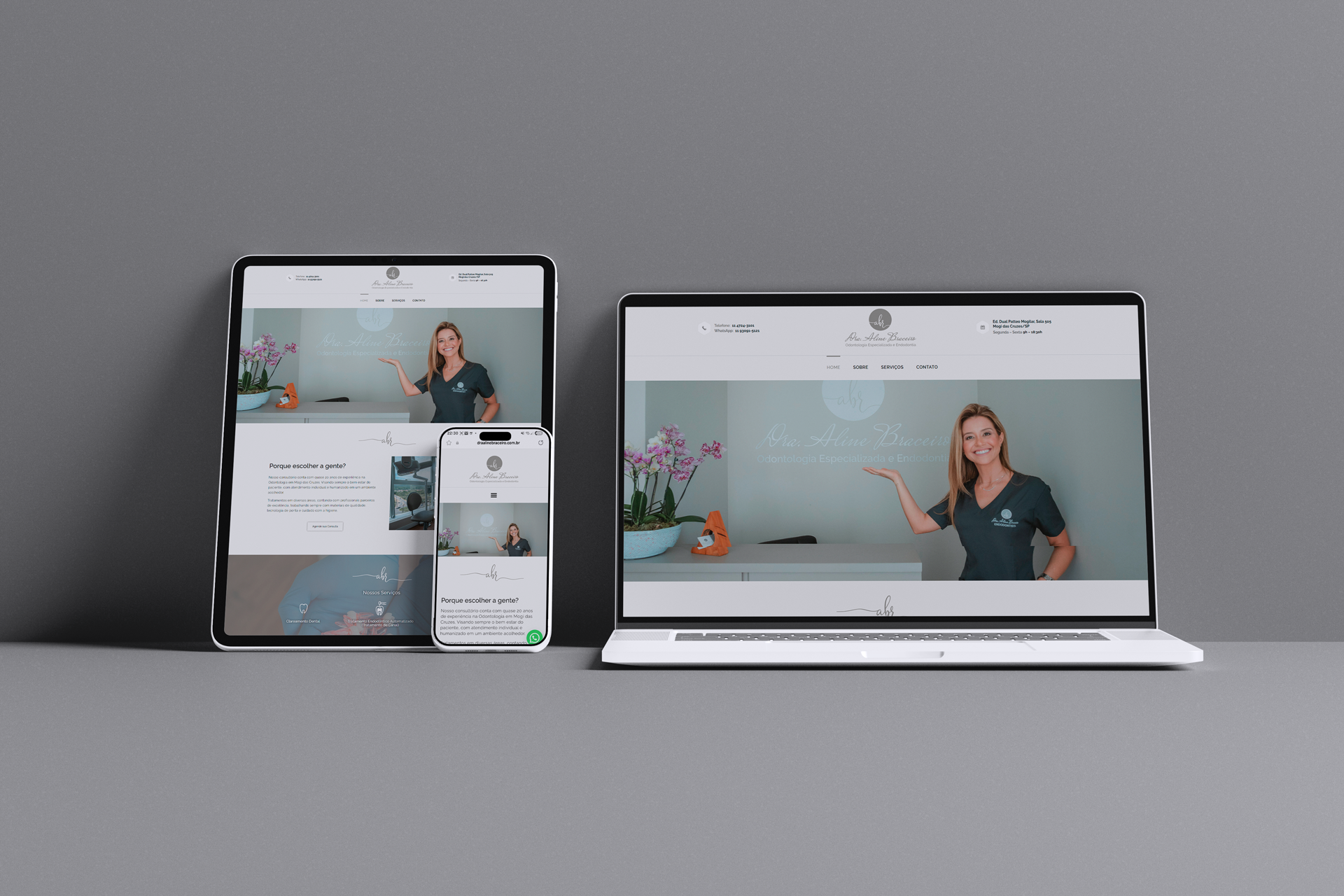 Criamos o website institucional da Dra. Aline Braceiro, especialista em endodontia há quase 20 anos em Mogi das Cruzes. O site destaca o atendimento humanizado e individualizado do consultório, com foco em tecnologia, qualidade e confiança, refletindo a paixão da profissional pela odontologia e pelo cuidado aos pacientes.