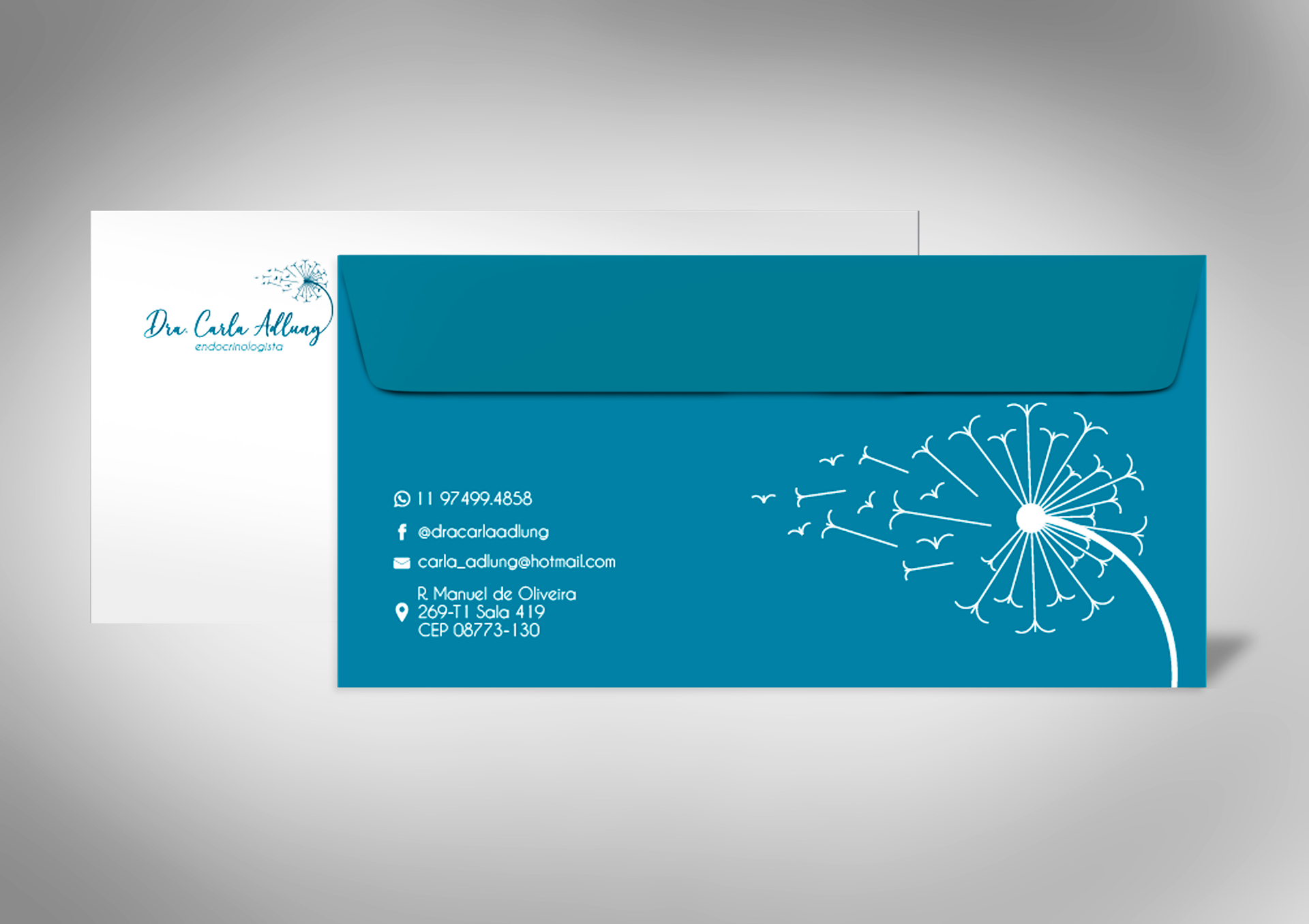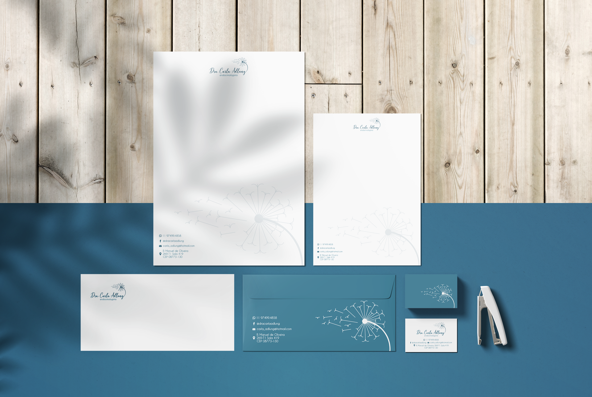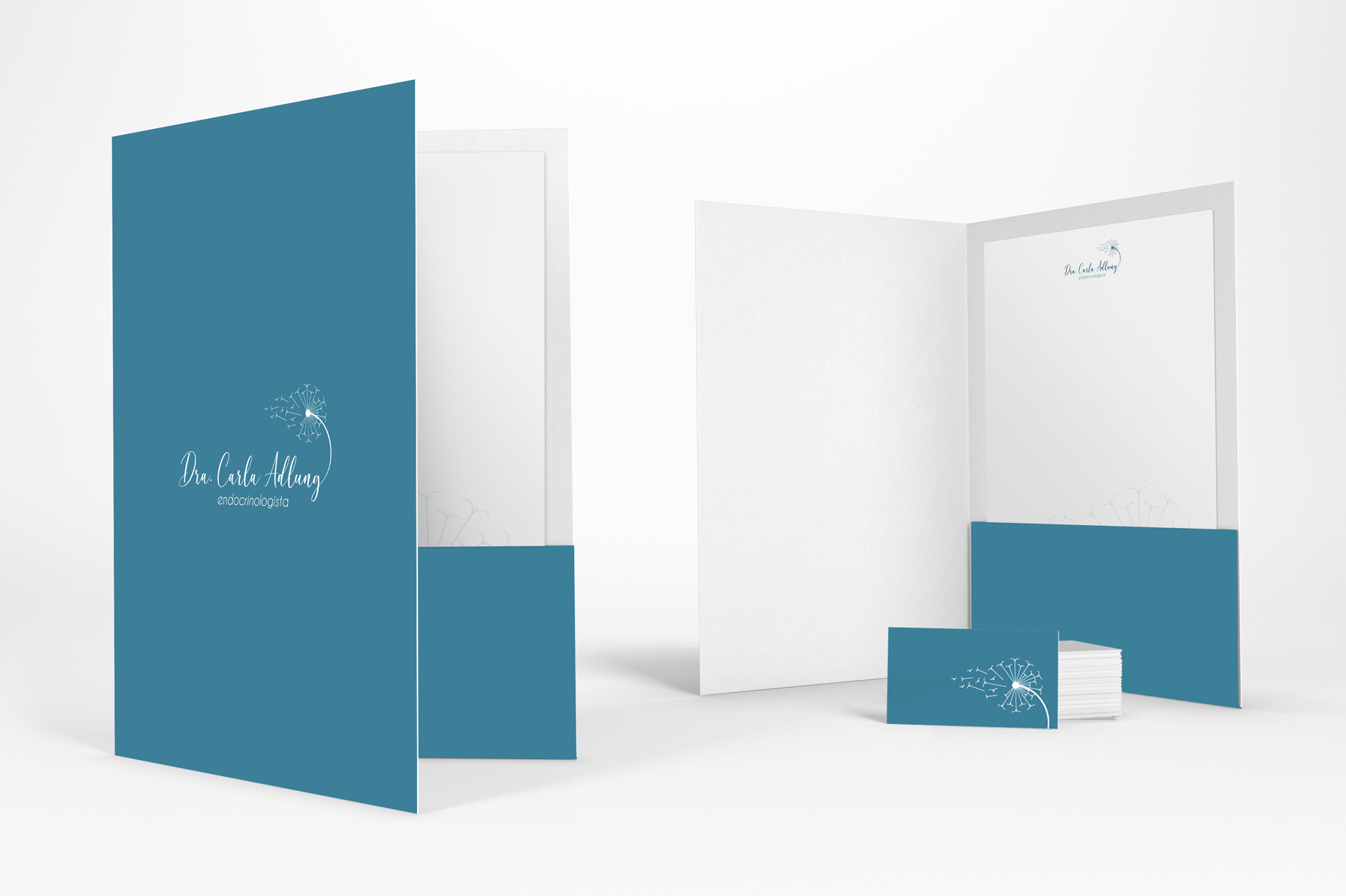 Para a criação da identidade visual do consultório da Dra. Carla Adlung, desenvolvemos um conceito delicado e acolhedor, utilizando como símbolo a flor dente-de-leão. Essa escolha carrega significados de esperança, liberdade e renovação — valores alinhados à missão da endocrinologia de transformar vidas e promover bem-estar.
