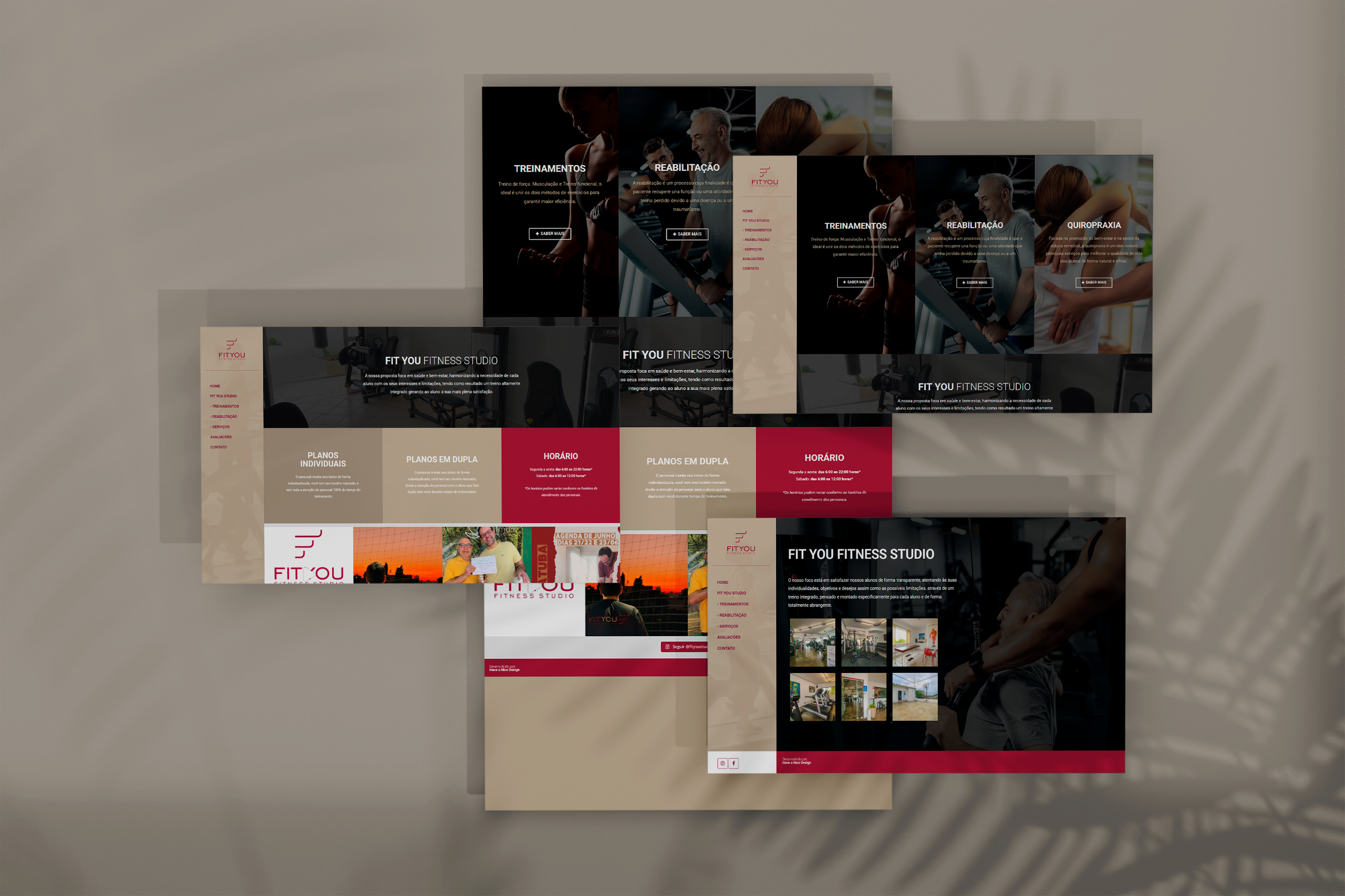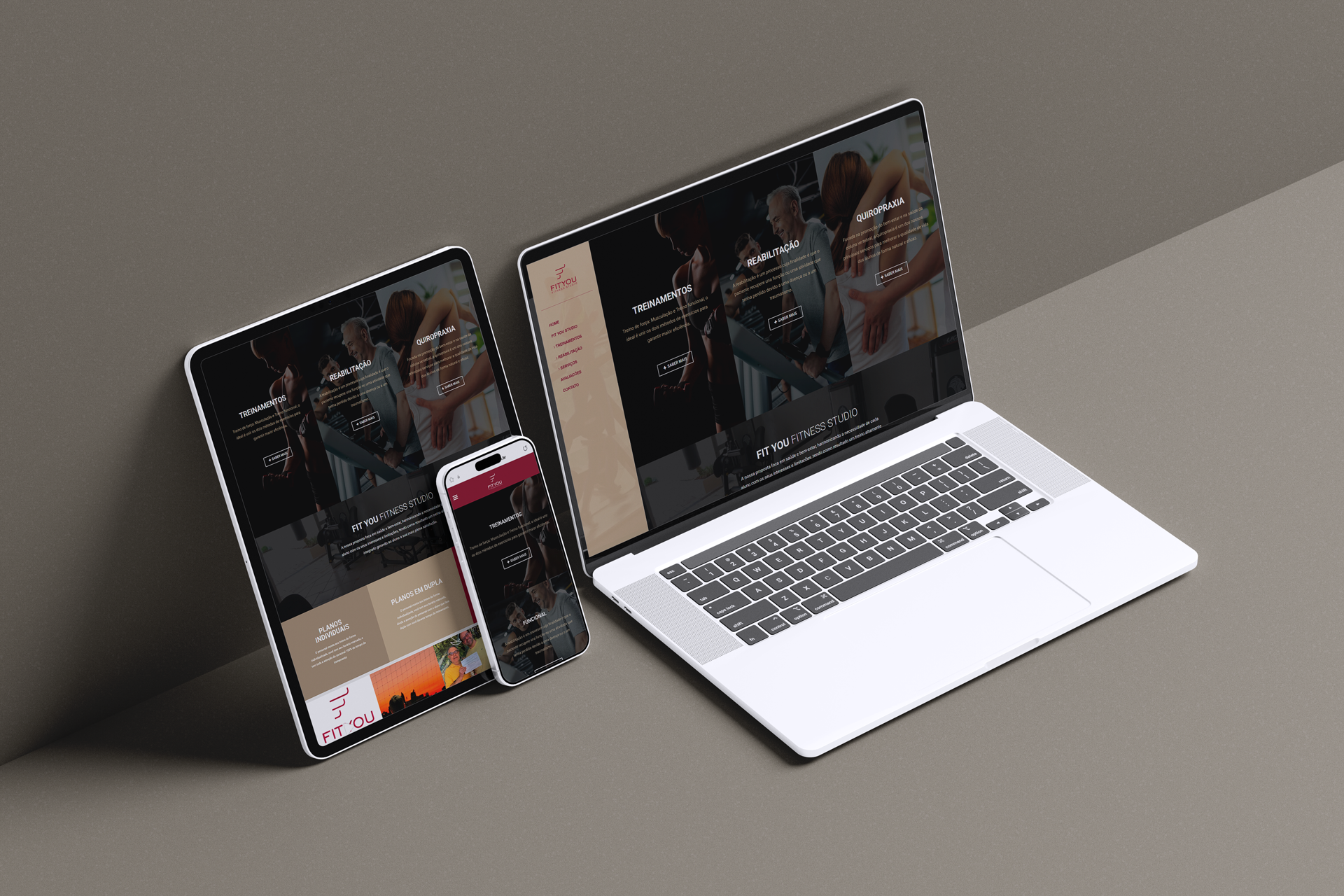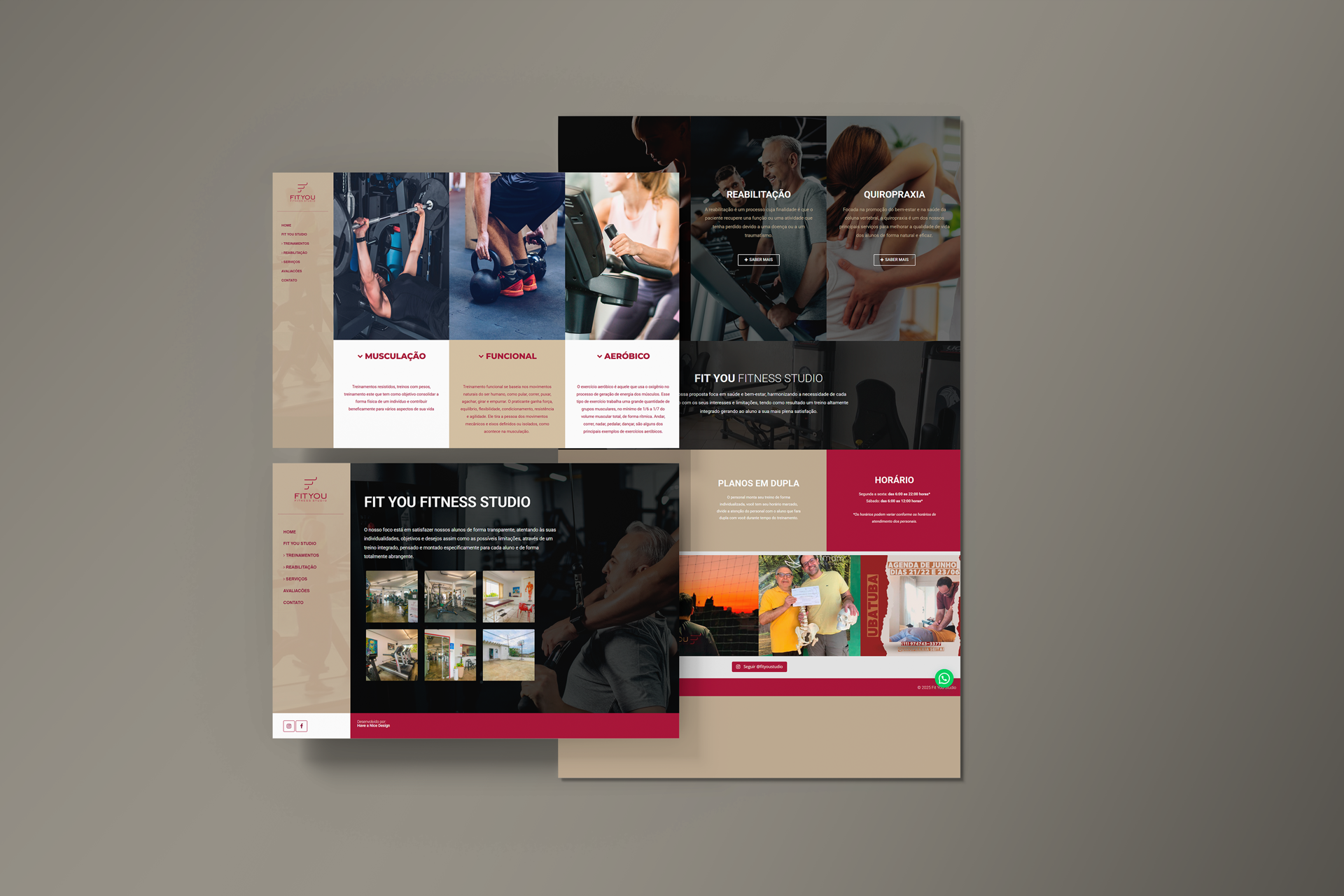 Criação do website institucional da FitYou Fitness Studio, destacando sua proposta de treinos personalizados voltados à saúde e bem-estar. O site possui layout moderno e navegação intuitiva, reforçando a conexão da marca com seu público.