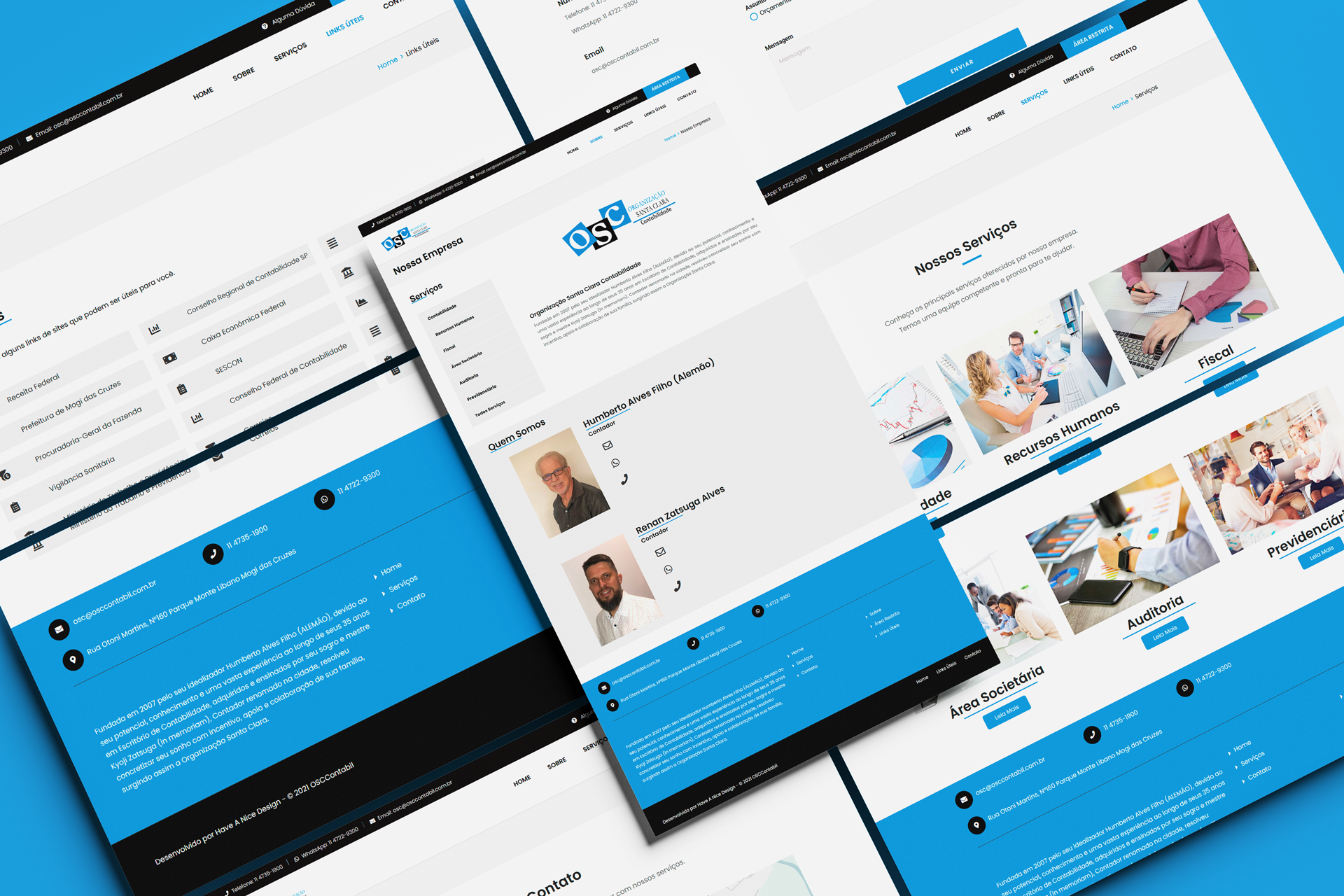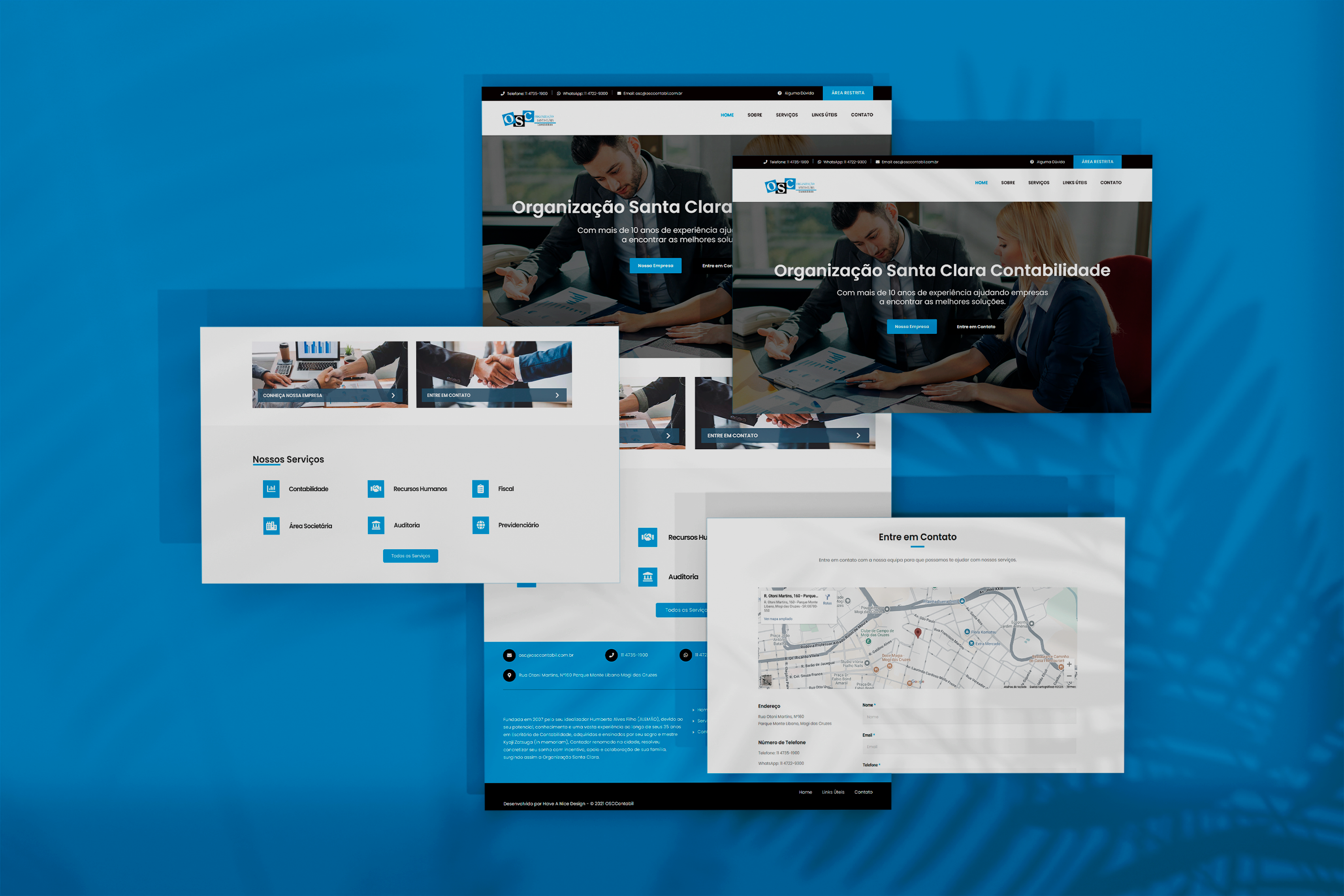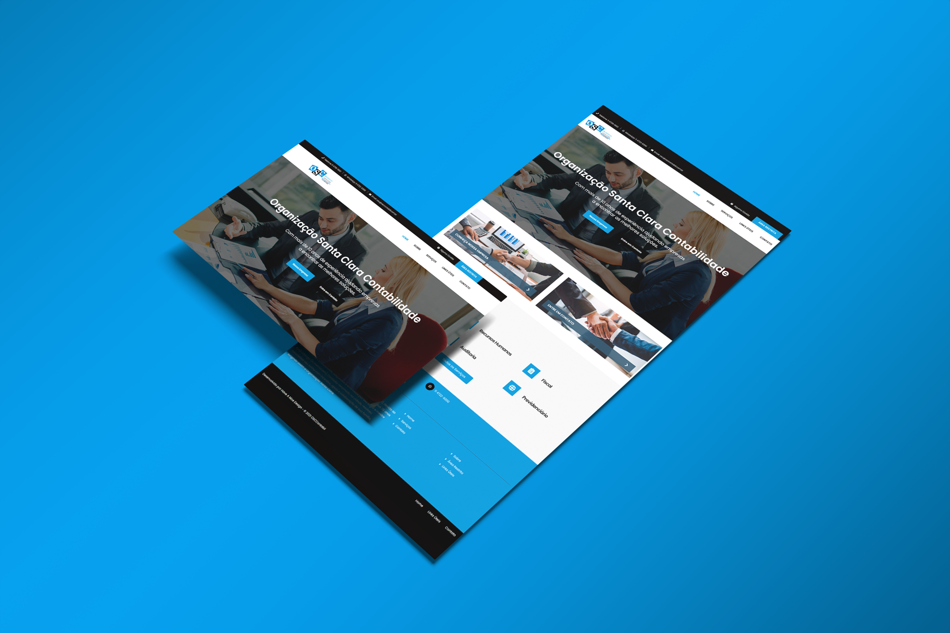 Desenvolvimento do website institucional da Organização Santa Clara Contabilidade (OSC Contabilidade), escritório fundado em 2007 por Humberto Alves Filho, profissional com mais de 35 anos de experiência na área contábil. O projeto contemplou a criação de um site moderno e informativo, com área restrita para clientes e sistema administrativo exclusivo para gestão de fichas de admissão, proporcionando mais agilidade e organização nos processos internos do escritório.