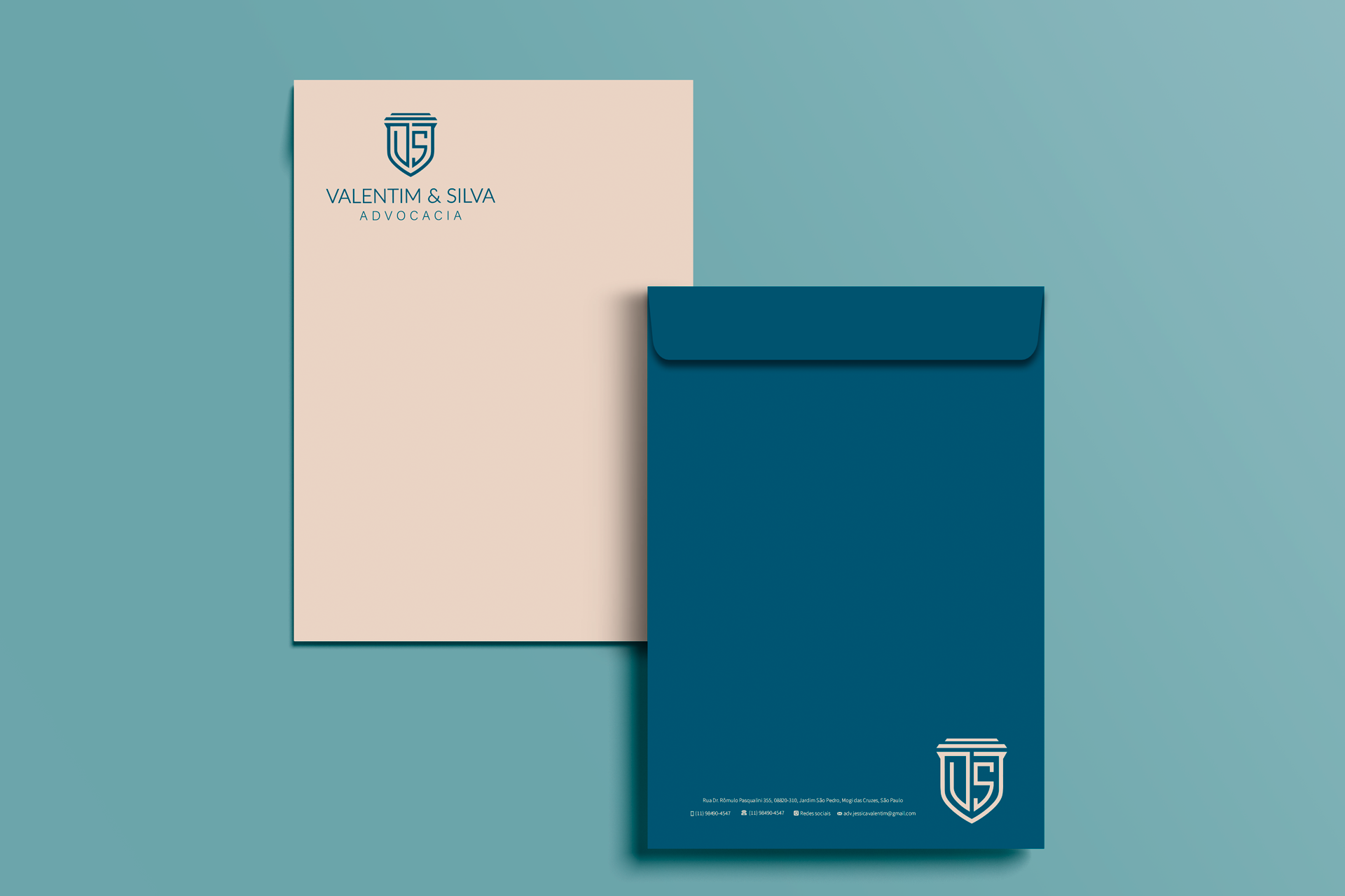 Para o escritório Valentim & Silva Advocacia, especializado em Direito Civil e Trabalhista, além de atuar em diversas outras áreas do Direito, desenvolvemos uma identidade visual que traduz seus principais valores: confiança, proteção e segurança.