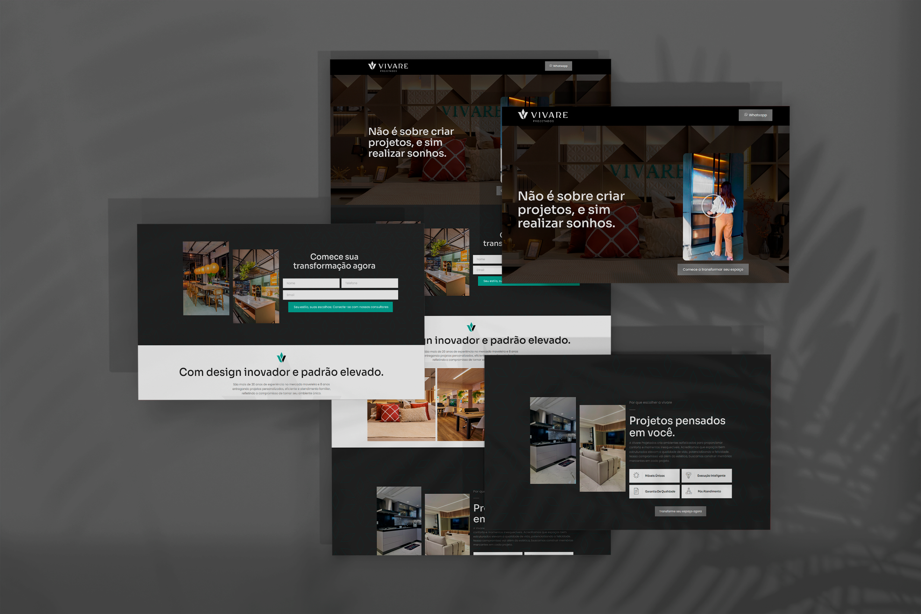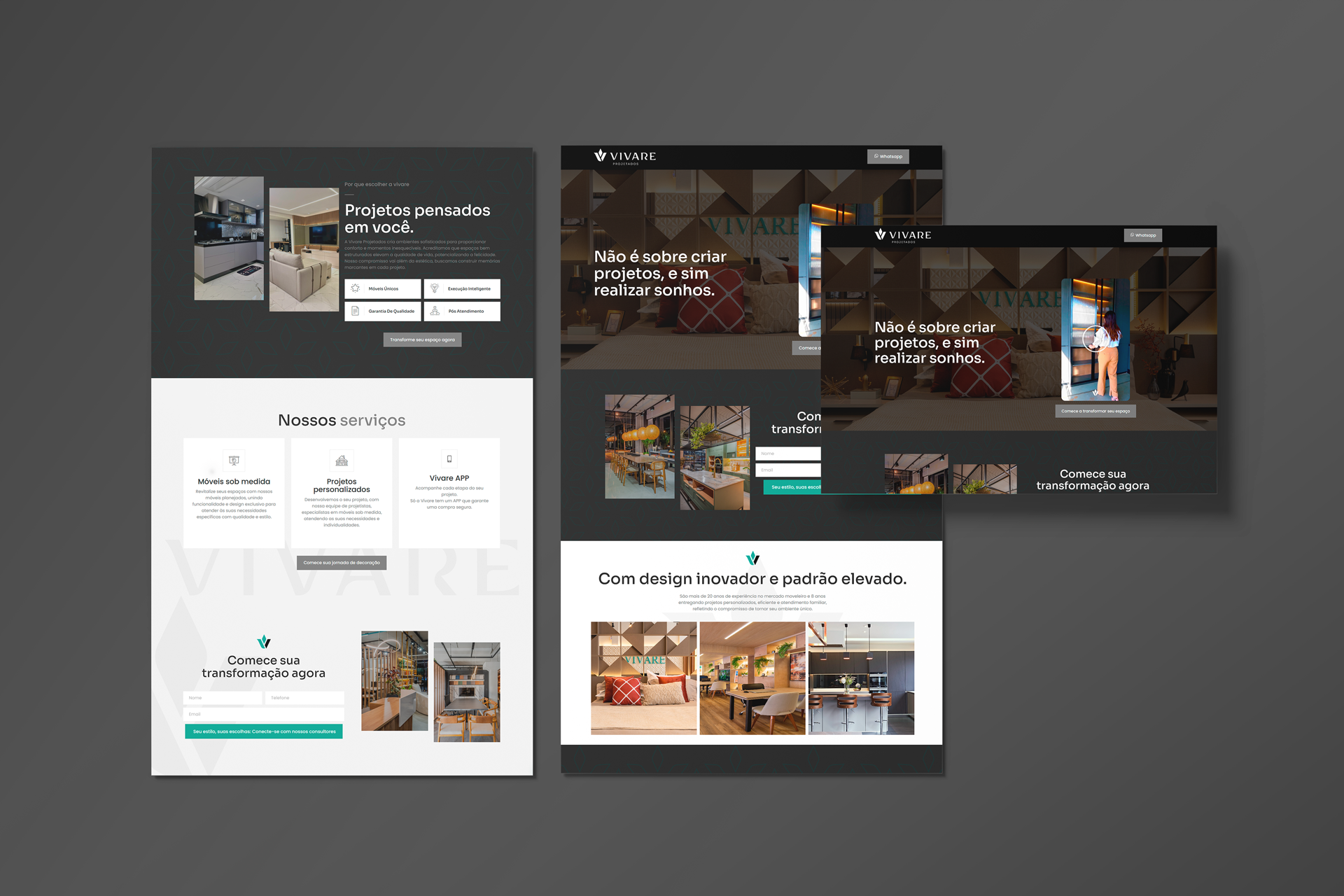 Desenvolvimento de Landing Pages para a Vivare Projetados, empresa especializada em móveis planejados há mais de 8 anos. O projeto teve como foco a captação de leads, unindo design atrativo e estratégias de conversão. A proposta buscou transmitir o conceito familiar e o cuidado presente em cada detalhe do atendimento e dos produtos da Vivare, reforçando a identidade da marca e a personalização dos serviços oferecidos.